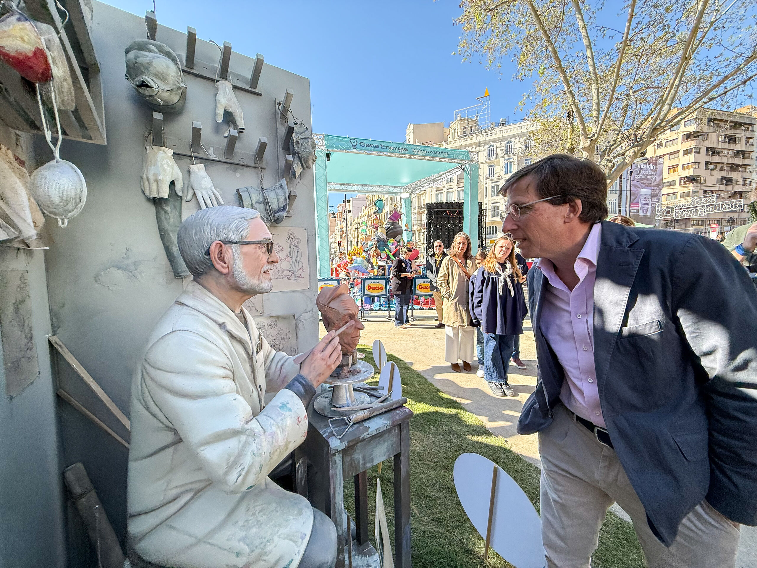 Antes de presenciar la mascletá desde el balcón del consistorio junto a Catalá y las falleras mayores, Almeida ha visitado algunas comisiones falleras del centro de la ciudad y ha saludado a los pirotécnicos encargados del disparo de la jornada, la Pirotecnia Tamarit. Asimismo, ha visitado al presidente de Mercadona e integrante de la falla, Juan Roig, para ver como preparaban uno de los platos valencianos por excelencia, el arroz al horno.