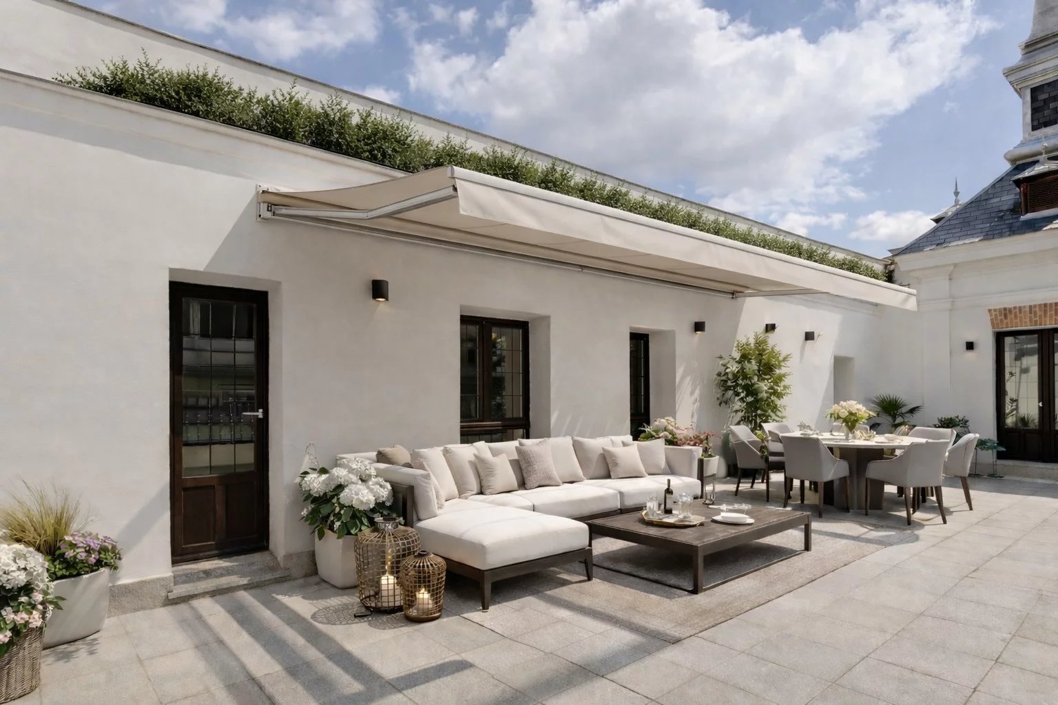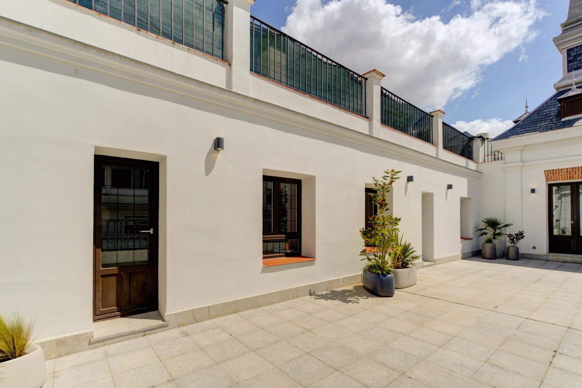 La casa ocupa el séptimo y último piso del histórico Palacete del Conde de Cedillo, construido en 1920, en pleno barrio de Salamanca y a un paseo del Paseo de la Castellana.