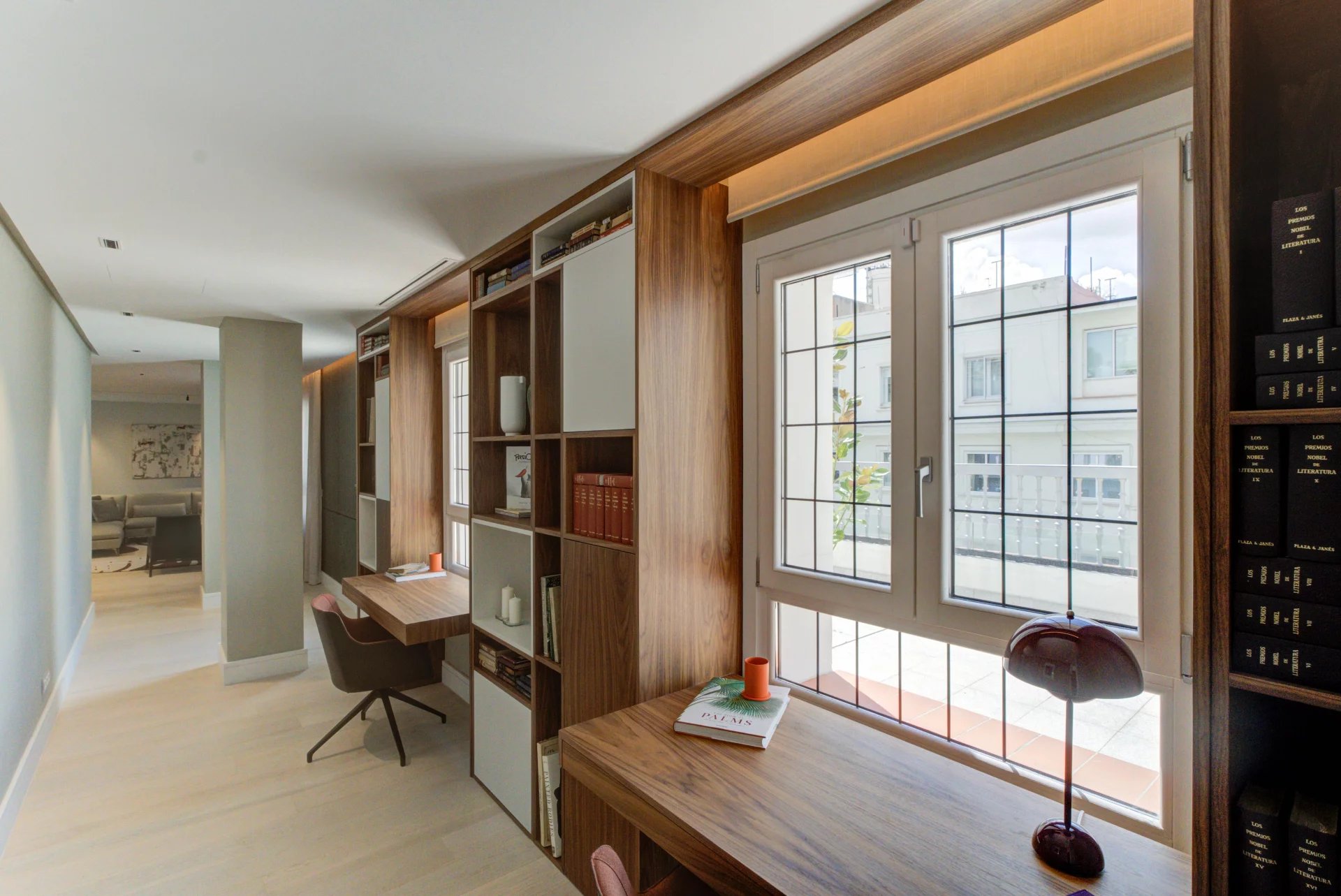 Entrar en este ático es asomarse a otra época… pero con todas las comodidades de hoy. En este mismo edificio vivió el escritor Ramón María del Valle-Inclán. Hoy, la inmobiliaria de lujo John Taylor gestiona su venta.