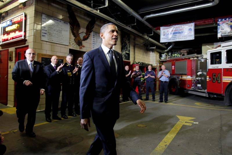 Además de saludar a los bomberos, Obama ha depositado una corona de flores en la Zona Cero, donde se levantaban las Torres Gemelas derrumbadas en los atentados del 11 de septiembre de 2001, y reunirse con familiares de las víctimas.
