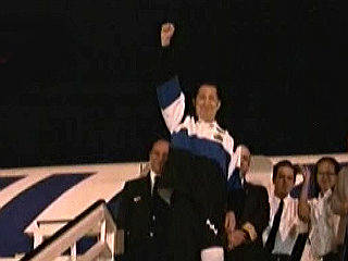 El canal estatal Venezolana de Televisión (VTV) informó de que la llegada se produjo a las 2:00 hora local (8:30 en España) y mostró imágenes de Chávez en el momento de su recibimiento en el aeropuerto venezolano de Maiquetía y en el de la salida en La Habana, donde le despidió Raúl Castro. "Muy felices de estar en casa de nuevo (...) Estamos desayunando ahorita", dijo Chávez en conexión con VTV tras un primera emisión de las imágenes de su llegada procedente de Cuba, donde ha permanecido en las últimas semanas.