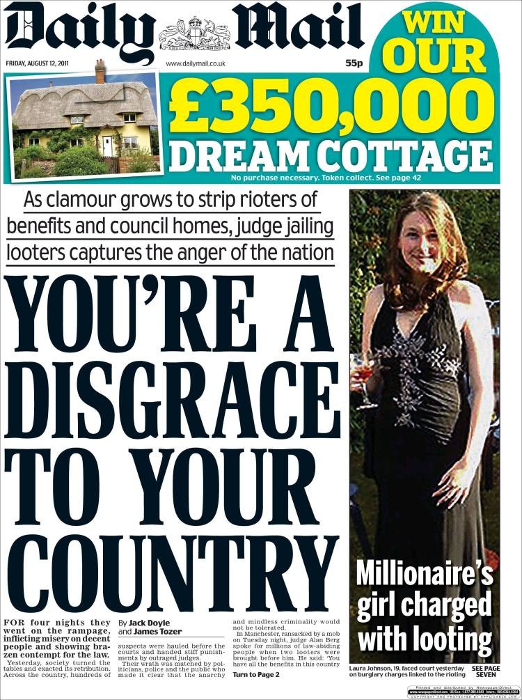 El descubrimiento de la joven Laura Johnson ha echado por tierra la mayoría de teorías y estudios sociológicos sobre los vándalos que han revolucionado Reino Unido durante cuatro jornadas de violencia. Cuando ya se creía que en su mayoría se trataba de jóvenes en situación de exclusión en barrios depauperados, se han hecho públicas algunas de las identidades de los detenidos en los disturbios que refutan esta teoría.