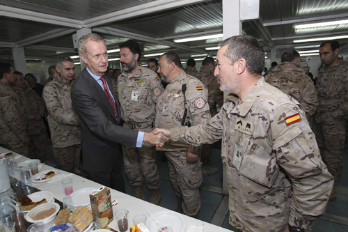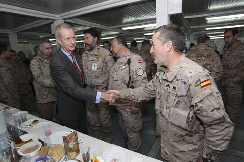 En presencia del Jefe del Estado Mayor de la Defensa (JEMAD), almirante Fernando Sánchez García, que ha viajado junto a él, Morenés ha destacado la labor "logística permanente y entregada" que desarrollan en Herat los militares españoles, y ha recalcado además que junto a este trabajo, y a las operaciones tácticas que se desarrollan, los militares españoles también "ayudan al pueblo de Afganistán a salir de un agujero histórico en el que llevan muchísimos años".