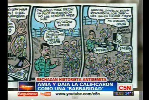 Como es evidente, este cómic ofensivo y claramente antisemita ha provocado la indignación de la comunidad judía en Argentina. Ángel Schindel, vicepresidente de la Delegación de Asociaciones Israelitas Argentinas (DAIA), señaló que "repudiamos esta caricatura ya que ofende la memoria de todos. Es una falta de respeto a los sobrevivientes del Holocausto, una banalización del mismo. Se hace en un día muy triste, hoy a 70 años de la conferencia Wansee (donde se ideó el exterminio judío) y a días del 'Día Internacional para la Recordación del Holocausto', con el cual Argentina está muy comprometida. No podemos dejar pasar estas cosas".