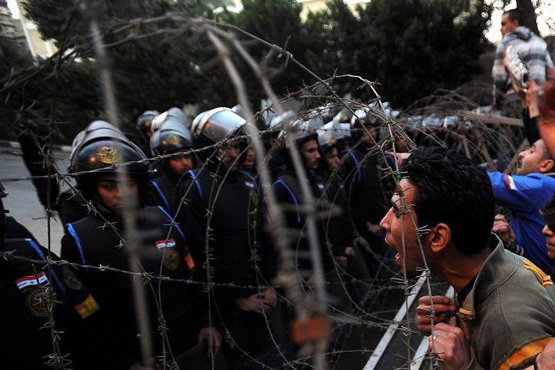 La nota indica que los manifestantes saltaron los muros de cemento para intentar llegar al ministerio, que está protegido por las fuerzas de seguridad. Según pudo constar Efe, la primera línea de contención de los manifestantes está formada por los efectivos del Ministerio del Interior, pero en la retaguardia se concentran vehículos blindados del ejército egipcio.