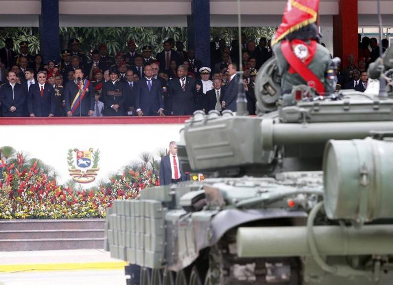 Tanques, misiles, lanzamisiles y fusiles adquiridos recientemente en Rusia, junto a helicópteros y aviones de combate Sukoi, que sobrevolaron Caracas acompañados por aparatos K-8 chinos, F-16 estadounidenses y Tucano brasileños, formaron parte del poderío bélico exhibido en el festejo del también llamado "Día de la Dignidad".