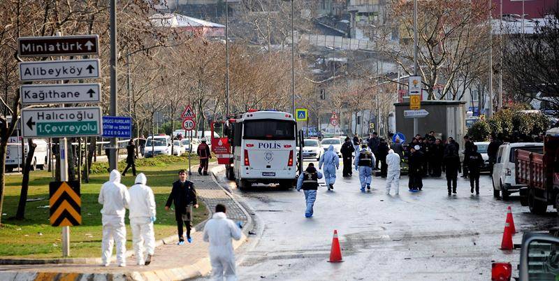 El primer ministro de Turquía, Recep Tayyip Erdogan, ha condenado "firmemente el atentado terrorista cometido en el distrito de Sutluce de Estambul". "Desgraciadamente, quince policías y un civil han resultado heridos", ha indicado en una rueda de prensa en Ankara. "Nuestra lucha contra el terrorismo continuará con la máxima determinación", ha subrayado.