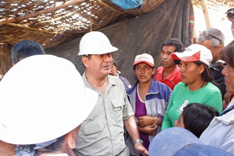 Merino llegó el domingo a la zona de la mina, en el distrito de Yauca del Rosario, en la región Ica, junto al presidente del Consejo de Ministros, Óscar Valdés, y el jefe del Instituto Nacional de Defensa Civil (Indeci), Alfredo Murgueytio.