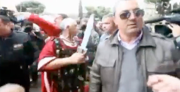 Este jueves se ha vivido un verdadero circo en el centro de Roma. La escena es similar a la que hace dos milenios debía ocurrir en pleno Imperio Romano. Centuriones y gladiadores han sacado las espadas y las uñas para defender su empleo y, de paso, discutir agresivamente con la policía local. Obviamente, los cientos de turistas han captado con sus cámaras la surrealista escena.