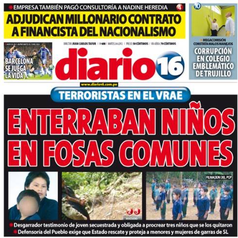Ante estas noticias, este martes, el primer ministro Oscar Valdés, anunció que el presidente Humala había ordenado rescatar a los niños reclutados por los terroristas en el Valle de los Ríos Apurímac y Ene (VRAE), ubicado en el suroeste del país: "Es muy importante rescatar a estos niños de las filas del terrorismo. Nosotros vamos a atender la denuncia que ha hecho el periodismo, estamos muy preocupados". Esto en referencia a unas denuncias de la prensa acerca del hallazgo de numerosos cadáveres de niños en fosas comunes.