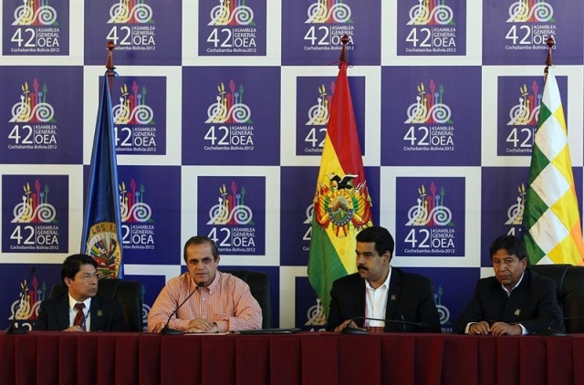 Durante la 42 Asamblea General de la Organización de Estados Americanos (OEA), que se ha celebrado en la localidad boliviana de Cochabamba, Evo Morales aprovechó la cobertura mediática para lanzar sus acostumbradas críticas contra todo lo que no siga el modelo bolivariano. Uno de sus blancos favoritos fue EEUU, como de costumbre, y también la OEA.