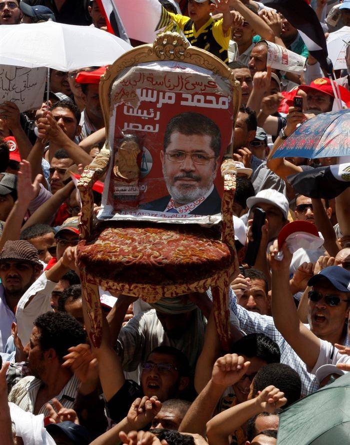 Mursi juró el cargo de presidente ante el Tribunal Constitucional. El islamista, que perteneció a los Hermanos Musulmanes, es el primer civil que accede a la Presidencia y el primer jefe de Estado elegido en unas elecciones democráticas en la historia de Egipto.