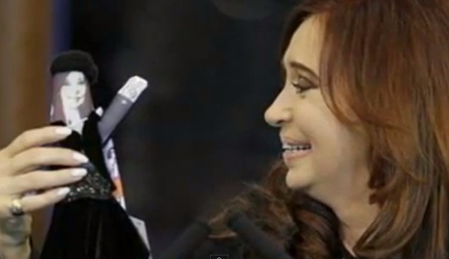 En un acto en la sede del Gobierno, Cristina Fernández dijo que también hay muñecos con las figuras de su esposo, el fallecido expresidente argentino Néstor Kirchner, y de los mandatarios de Uruguay, José Mujica, y de Venezuela, Hugo Chávez.