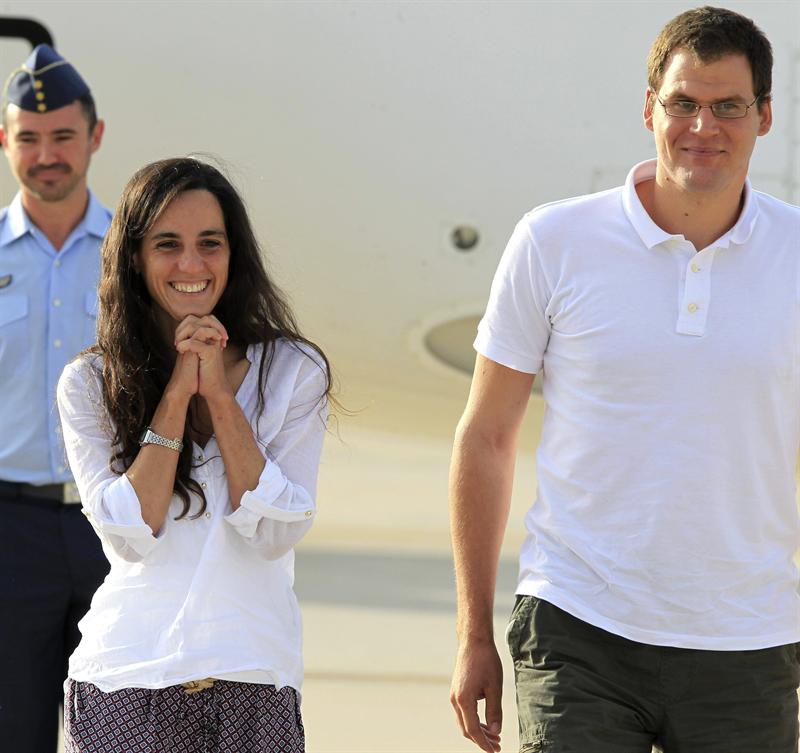 Los dos cooperantes españoles liberados ayer, miércoles, en Mali tras nueve meses de secuestro, Ainhoa Fernández de Rincón y Enric Gonyalons, han llegado este jueves a la base aérea de Torrejón de Ardoz (Madrid) poco antes de las 20.00 horas, donde les esperaban sus familias y la vicepresidenta del Gobierno, Soraya Saénz de Santamaría.