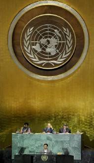 LD (Agencias) En su última intervención como presidente de EEUU en la tribuna de la Asamblea General de la ONU, George Bush, se ha referido al plan de su Gobierno presentado ante el Congreso estadounidense para superar la actual crisis económica. Inmediatamente después, centró su discurso en el combate al terrorismo y acusó a los regímenes de Siria e Irán de dar financiamiento. Por ello, pidió a la comunidad internacional reunida en Nueva York que adopte sanciones en su contra, al igual que contra la dictadura comunista de Corea del Norte.