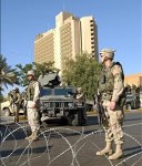 Instantes después de las explosiones, soldados estadounidenses acordonaron la zona, a la que no permitían entrar, mientras que los militares iraquíes se encargaban del segundo perímetro de seguridad. Mientras, las ambulancias y el resto de servicios de emergencia no cesaban de llegar al lugar de los hechos. Las fuentes aseguraron que entre los fallecidos hay dos miembros de la seguridad del Hotel Palestina, cuya segunda planta quedó prácticamente derruida por la explosión.