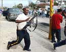 Mientras, la situación en Cabo Haitiano, la segunda ciudad más populosa de Haití, es de "mucho miedo" tras la captura de la localidad por un grupo armado de la oposición capitaneado por el ex militar golpista, Guy Phillippe. Los rebeldes atacaron varias oficinas gubernamentales y de instituciones partidarias del presidente Aristide. Medios de comunicación locales indicaron que la radio RTK y los tribunales de la ciudad también han sido destruidos, al parecer por turbas de habitantes y no por los rebeldes. Varios testigos relataron que policías habrían intentado resistir el empuje de los rebeldes, lo que provocó un enfrentamiento en el que murieron entre cuatro y diez personas. La caída de la ciudad es especialmente preocupante para el Gobierno ya que cierra el triángulo territorial ahora en manos de las fuerzas rebeldes agrupadas en torno a Phillippe.