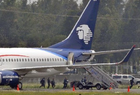 Los pasajeros y la tripulación del avión, que aterrizó en el Aeropuerto Internacional de la Ciudad de México (AICM), fueron liberados apoyados por un comando de la Policía Federal, que llegó en helicóptero a la pista 23.