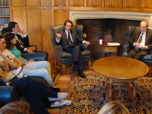 (Libertad Digital) La ponencia fue realizada por el ex presidente del Gobierno ante alumnos y profesores universitarios de Yale y ha estado centrada en analizar diversos aspectos políticos y económicos de la situación internacional, encabezados por los 100 primeros días de gobierno norteamericano de Barack Obama.
