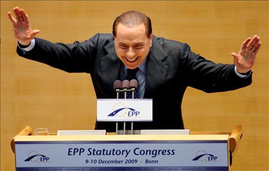 Más adelante, después de mencionar las "calumnias" con que le ha atacado la izquierda, aseguró que en realidad, éstas han terminado por reforzarle todavía más, ya que ahora "la gente dice: madre mía, pero dónde encontraremos uno tan fuerte, duro y con un par de pelotas como Silvio Berlusconi", palabras que provocaron las risas de los asistentes, entre los que se encontraban la canciller alemana, Angela Merkel.