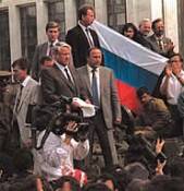 Este ascenso de Yeltsin ya no tuvo marcha atrás después de la fallida asonada golpista de agosto de 1991. El gobierno soviético, el ejército y el KGB, con el apoyo de la cúpula del PCUS, anunciaron la declaración del Estado de emergencia ante la "incapacidad" de Gorbachov por una supuesta enfermedad, que no era más que una invención. El objetivo era recuperar la ortodoxia comunista de la terrible dictadura soviética, y frenar las reformas democráticas. El vicepresidente Yanayev asumía los poderes y se autoproclamaba presidente, para "evitar el caos y la anarquía".