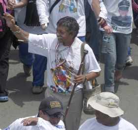 En su última etapa, desde la localidad de Soacha a Bogotá, Monacyo estuvo acompañado de simpatizantes que piden un acuerdo humanitario entre el Gobierno del presidente Álvaro Uribe y las Fuerzas Armadas Revolucionarias de Colombia (FARC) que permitiría la liberación de 45 policías, soldados, estadounidenses y políticos secuestrados a cambio de la excarcelación de quinientos terroristas.