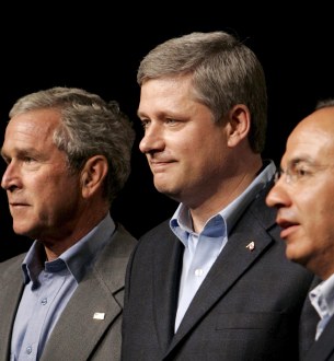 Bajo el mismo guión, Bush, Harper y Calderón se turnaron para desacreditar a los que critican la ASPAN (Alianza para la Seguridad y Prosperidad de América del Norte) por considerar que minará la soberanía de los tres países, y destacaron que los tres países se benefician del comercio y de "estrategias comunes a amenazas comunes".