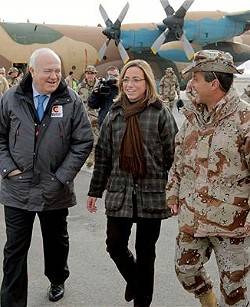 Tras más de diez horas de viaje desde Madrid , de donde partieron el lunes, Chacón y Moratinos han sido recibidos en la base afgana por el coronel responsable de la instalación militar española y autoridades locales.