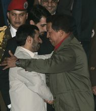 Por su parte, el presidente iraní llamó a su "hermano de corazón" Chávez el "gran revolucionario de América Latina", y lo calificó como "un gran hombre, revolucionario y valiente, que ha dedicado su vida al avance del pueblo venezolano, de la revolución y al despertar del pueblo latinoamericano". Auguró que los gobiernos y pueblos de Irán y Venezuela "con una puesta en común estarán siempre juntos en la escena mundial (...) multiplicando" su poder en beneficio de la paz y prosperidad de los "pueblos oprimidos".
