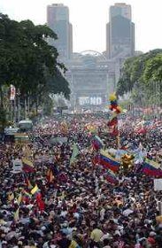 Este jueves, la oposición se lanzó a la calle y se espera que este viernes los chavistas hagan lo propio. El domingo día 2 de diciembre les espera una cita con las urnas que se convierte en un plebiscito del golpista Hugo Chávez y su proyecto de construcción del regimen bolivariano o el Socialismo del Siglo XXI.