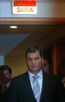 Antes de reunirse con el presidente Luiz Inacio Lula da Silva, Correa aseguró que sólo estará satisfecho si la Organización de los Estados Americanos (OEA) manifiesta un "rechazo categórico" a la incursión colombiana en suelo ecuatoriano, aunque aún así las relaciones con Colombia seguirían "rotas". Indicó que sólo se restablecerán las relaciones con su vecino en el "muy improbable caso" de que el presidente colombiano, Álvaro Uribe, "pida excusas sin tapujos", se comprometa a "no repetir estas acciones" y reconozca la "cantinflada" de intentar relacionar a Ecuador con las terroristas FARC.