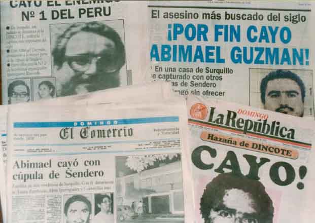 Como era de esperar, la noticia causó un revuelo inmediato en todo el Perú. Aún siendo estudiante, recuerdo que esa misma noche celebraba el cumpleaños número 50 del que sería años después mi suegro, un gran amante de la cultura española y sobre todo de su música y de la fiesta nacional (llegó a ver en la histórica plaza de Acho a maestros del nivel de Antonio Ordoñez, Antonio Bienvenida y Santiago Martin "El Viti"). Mientras estaba junto a otros invitados frente a la televisión viendo la pelea de boxeo entre Hector "Macho" Camacho y Julio César Chávez, mi atención, y la de todos, se centró en las letras que comenzaron a aparecer por la pantalla. Decía algo así como "Cae Abimael Guzmán" o algo parecido. El júbilo no se hizo esperar: había caído Abimael y todos vimos por fin cerca el final de Sendero. En parte, fue así.