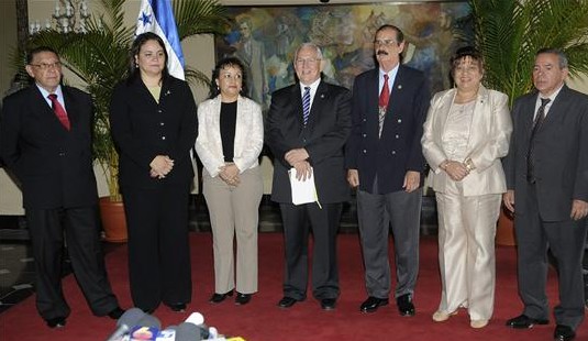 "El presidente de la República, Roberto Micheletti, pidió a sus secretarios de Estado poner a disposición sus cargos para conformar el nuevo Gabinete de lo que será el Gobierno de Unidad y Reconciliación Nacional. (...). Todos depusieron sus cargos", anunció el Ejecutivo golpista en un comunicado.