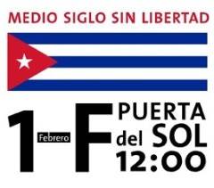 L D (Europa Press) Bajo el lema Cuba: medio siglo sin libertad, la Asociación de Iberoamericanos por la Libertad (AIL) y la Asociación Española Cuba en Transición (AECT) han convocado una concentración este domingo en la Puerta del Sol de Madrid contra el 50 aniversario de la Revolución y a la que el PP, CiU y UPN ya han anunciado su apoyo.