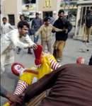 Este martes, otro restaurante de KFC y uno de la cadena estadounidense "McDonald's" fueron incendiados por manifestantes en Lahore, capital de la provincia paquistaní de Punjab (este del país) en unas violentas protestas en las que dos personas perdieron la vida. Ambos fueron tiroteados por guardias de seguridad cuando intentaban incendiar una sucursal del banco Union Bank.