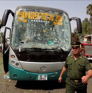 Fuentes de seguridad aseguraron que el segundo atentado fue el más mortal y alcanzó un autobús que transportaba a trabajadores argelinos de la empresa canadiense de construcción SNC Lavalin. La explosión mató a once pasajeros del autobús. Ningún extranjero figura entre las víctimas.