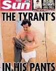 LD (EFE) The Sun, el periódico sensacionalista de mayor venta en el Reino Unido, publica en su edición de este viernes fotos de Sadam Husein -una de ellas en calzoncillos- en la cárcel. Las otras imágenes muestran al ex dictador dormido en una habitación, sentado en una silla de plástico rosa lavando su ropa en un barreño y otra con cara de preocupado en el patio de paseo de presos.