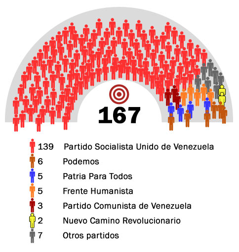 La no concurrencia de la oposición a las anteriores elecciones configuró una cámara en la que el chavismo hace y deshace a su antojo. Pero el reto ahora se presenta en conseguir 110 diputados, dos tercios, único triunfo en el que le serviría para consumar su revolución, que en una década ha arruinado por completo a Venezuela.
