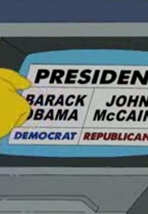 En una secuencia difundida en YouTube se ve a Homer Simpson acudiendo a votar a un gimnasio en medio de una música de fondo terrorífica. Tras registrarse se enfrenta a la máquina de voto electrónico que tiene dos opciones: Barack Obama y John McCain. Homer pulsa la pantalla por el demócrata pero el aparato registra el sufragio a favor de McCain. Hasta seis veces intenta cambiar el voto pero la máquina lo registra a favor del republicano, tal y como le informa la voz automatizada.