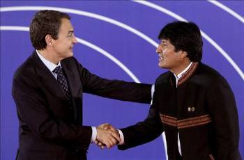Mucha conspiración y mucho alarde económico. Así puede resumirse la intevención de Evo Morales, presidente de Bolivia, en un desayuno informativo de Europa Press previo a la VI Cumbre Unión Europea-América Latina y el Caribe (UE-ALC) que se celebra en Madrid.