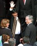 Poco antes había tomado posesión de su cargo el vicepresidente, Álvaro García Linera; también con la mano en el corazón, y no de la forma tradicional, haciendo la señal de la cruz con los dedos de la mano derecha.
