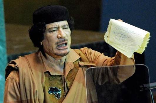 En un discurso largo, crítico e inconexo, el líder libio acusó a los cinco miembros permanentes del máximo órgano (EEUU, Rusia, China, Francia y Reino Unido) de ser los responsables de numerosos conflictos tras la Segunda Guerra Mundial que han causado "millones de muertos". "Estos países recurren a la guerra y disfrutan del poder de veto. Empezaron guerras que costaron la vida a millones de personas", aseguró.