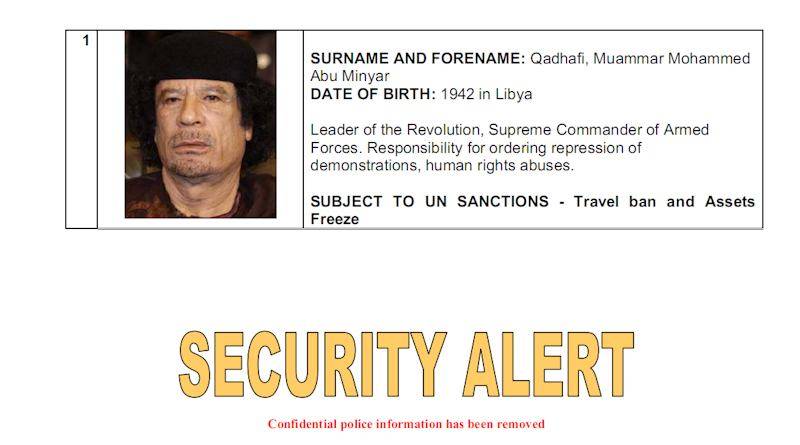 El objetivo es coordinar las acciones de los países miembros de la Interpol para que ninguno de los incluidos en la lista pueda atravesar sus fronteras, y garantizar que permanezcan congelados sus bienes fuera de Libia.