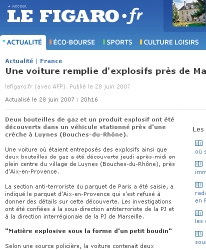 L D (Agencias) Según fuentes policiales, el automóvil contenía dos botellas de gas y "un poco de material explosivo, de naturaleza de momento indeterminada, con forma de pequeña morcilla" que aún debe ser examinada por un laboratorio científico. No se localizó ningún sistema de detonación en el automóvil, un Peugeot 206 que había sido robado.