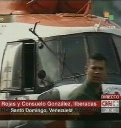 Abrazadas con el ministro venezolano del Interior, Ramón Rodríguez, las ex rehenes se trasladaron a un avión Falcón que las esperaba en la pista para llevarlas al aeropuerto de Maiquetía, aledaño a Caracas. Allí las espeban varios de sus familiares, entre ellos Clara González de Rojas, madre de la ex candidata a la Vicepresidencia colombiana Clara Rojas, y dos hijas de la ex diputada Consuelo González de Perdomo.