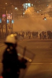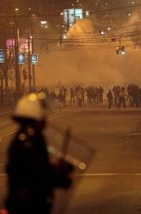 En el momento en que las tropas salieron al exterior, un amplio grupo de civiles bloqueó la carretera. Fue en ese momento cuando los serbios empezaron a lanzar piedras contra los policías. Los soldados respondieron con el disparo de botes de humo y bombas aturdidoras. La multitud consiguió interceptar dos vehículos y liberar a los serbios que iban en su interior, concretamente a 21 personas, entre hombres y mujeres. Los otros 32 también consiguieron la libertad y regresar al norte de la ciudad.