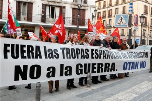 La marcha, que no tuvo el éxito esperado, fue convocada por la Plataforma contra la guerra en Afganistán, integrada por varias organizaciones políticas y sociales, entre ellas IU y el PCE, los manifestantes han exigido al Ejecutivo que abandone su retórica de "misiones de paz" o de "reconstrucción del país", publica La Razón.
