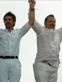 L D (EFE) Los casi 70.000 colombianos de Cútula y venezolanos de San Antonio se congregaron en los alrededores del puente Simón Bolívar bajo un calor sofocante, y pudieron presenciar lo que fue calificado un concierto "histórico", como lo denominó Bosé. Todos los artistas, según Bosé, se reunieron allí como "cancilleres de la paz", como se hicieron llamar, y cantaron el "¡Ojalá que llueva café!" de Guerra y el "Corazón partío" de Sanz.