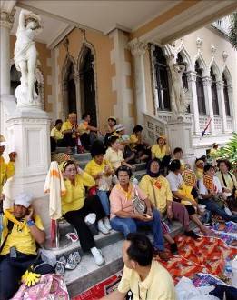 LD (EFE) Miles de manifestantes que piden la dimisión del primer ministro, Samak Sundaravej, mantienen tomada la sede del Gobierno de Tailandia, en Bangkok, después de que durante la madrugada de este martes la Policía intentara disolverlos. La operación se saldó con seis heridos y en ella participaron unos quinientos policías y agentes antidisturbios. Los opositores pertenecen en su mayoría a la Alianza del Pueblo para la Democracia.
