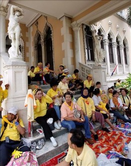 Tras la fallida operación policial, manifestantes de otras partes de Bangkok, que la víspera participaron en la toma o en el corte de los accesos al centro de la televisión estatal y tres ministerios (Finanzas, Agricultura y Transportes), se han trasladado al palacio del Gobierno para reforzar las filas.